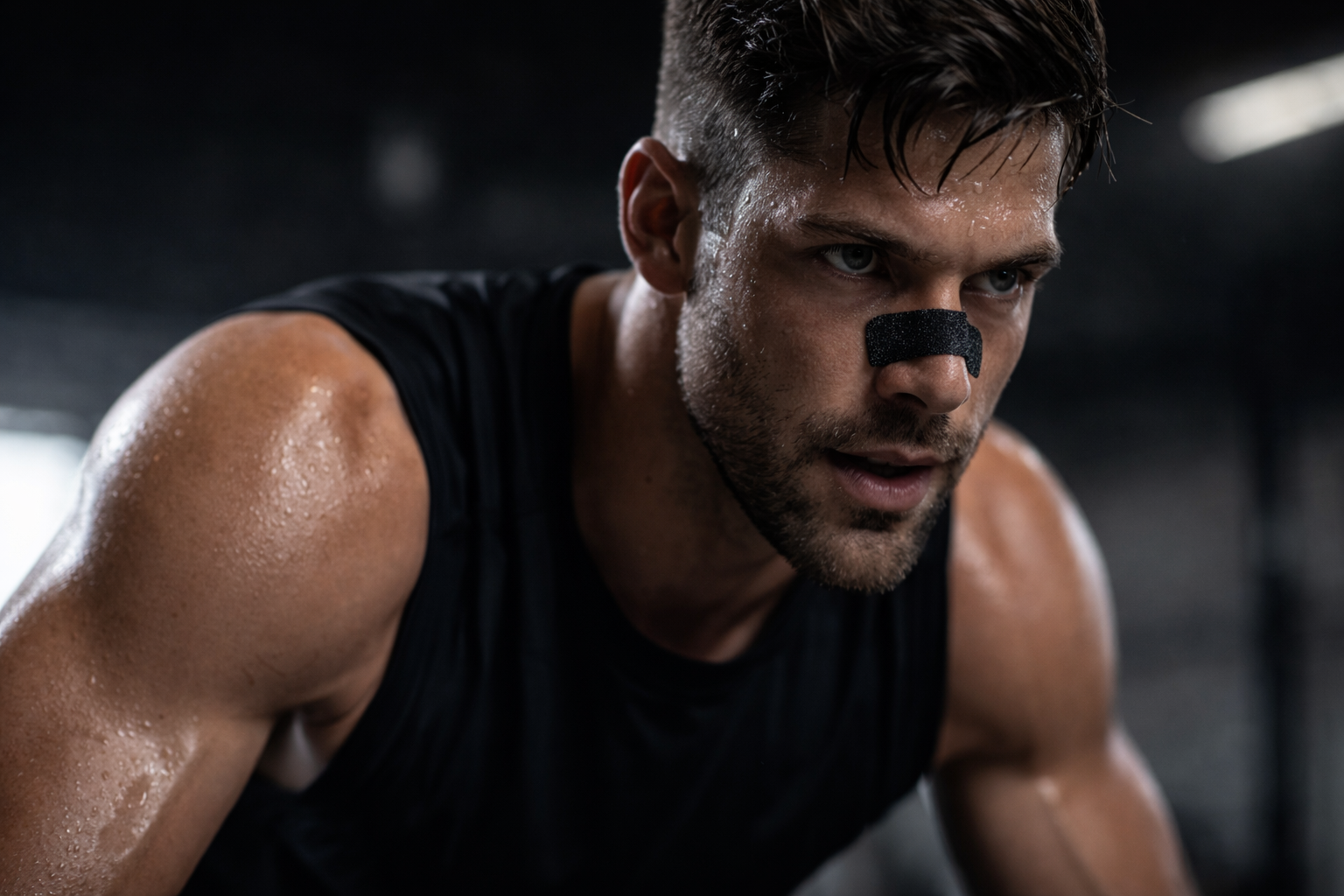 Les bandelettes nasales BiaFarma se placent facilement sur le nez avant l’entraînement.